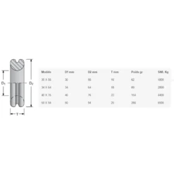 | Modèle | D1 mm | D2 mm | T mm | Poids gr | SWL Kg |