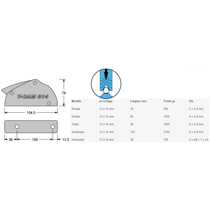 Caractéristiques techniques du bloqueur Antal V-CAM 814 équipement bateau :