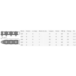 | Modèle | Diamètre | ø cordage | Nombre de réas | Longueur | Entraxe | SWL Kg | Poids gr | Vis |