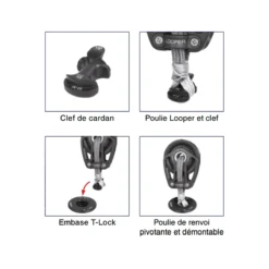 Résolument dans l’air du temps, ANTAL propose ici un produit fini d’une grande simplicité et très fiable. La cadène à encastrer T-Lock ou pad-eye de pont amovible consiste en une platine aluminium anodisé haute résistance à monter à travers le pont et qui accepte un cardan ou une clé de cardan type os de chien et permet ainsi la mise en place de tout type de poulie ou anneau faible friction sur cordage Dyneema, Snap loop ou manille textile. Idéal pour la fixation de poulies de renvoi de bras de spi ou de tout type d’accastillage sur le pond du bateau, cette cadène à axe amovible tournant sur 360° haute technologie résiste à des charges allant de 2200 à 3500 Kg et permet un changement d’accastillage, poulie ou anneau faible friction en un tour de main. Un véritable équipement de pont haute technologie largement diffusé dans le monde de la course au large, mini transat, IMOCA et tour du monde aujourd’hui disponible pour tout plaisancier soucieux d’équiper son bateau d’accastillage actuel!