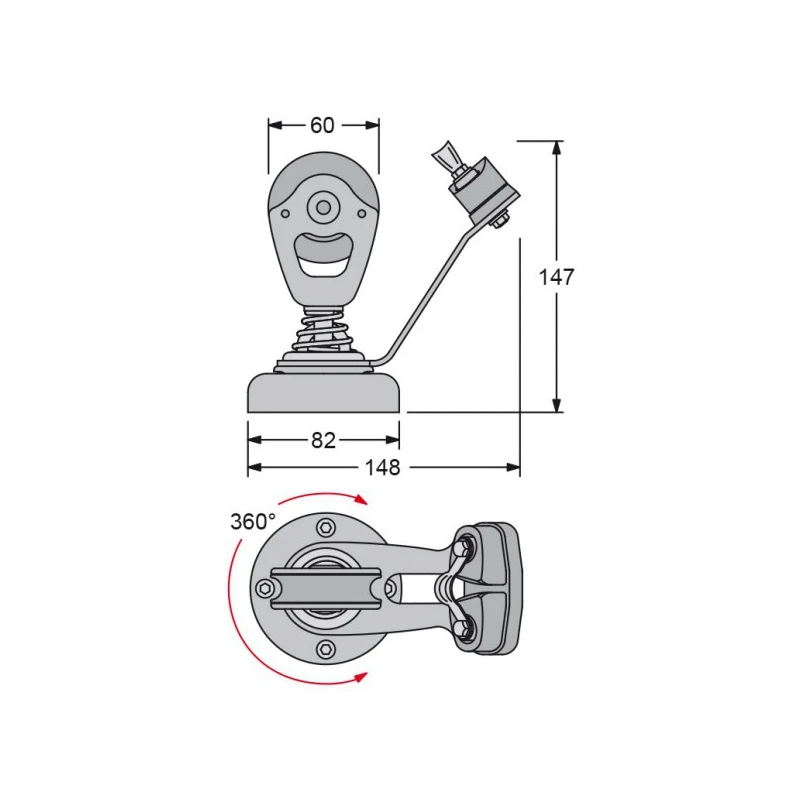 Accastillage de qualité pour le croiseur comme pour le catamaran de sport, cette tourelle équipée d’une poulie Antal OPF 60 et d’un Servo Cleat ou coinceur peut tourner sur 360° sur son roulement haute qualité à billes Torlon. Idéal pour renvoyer tout cordage vers son utilisateur, cette tourelle aluminium à roulement Torlon peut accepter des écoutes ou cordages jusqu’à un diamètre de 12 mm pour une utilisation sur tout type de bateau, en régate comme pour la plaisance.