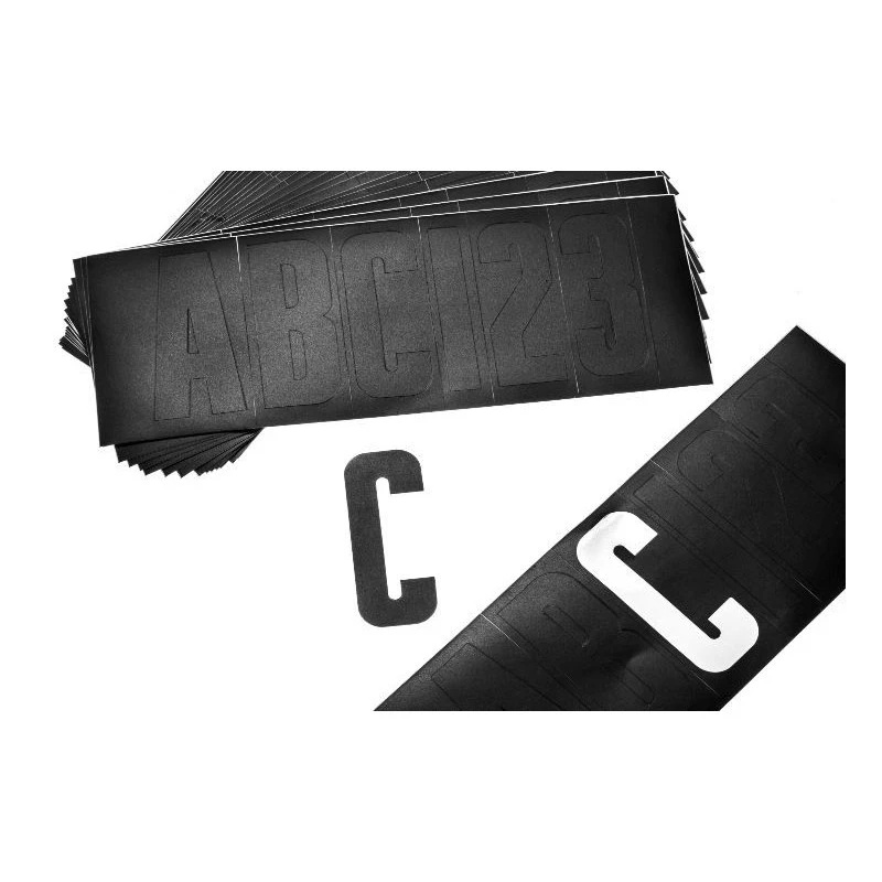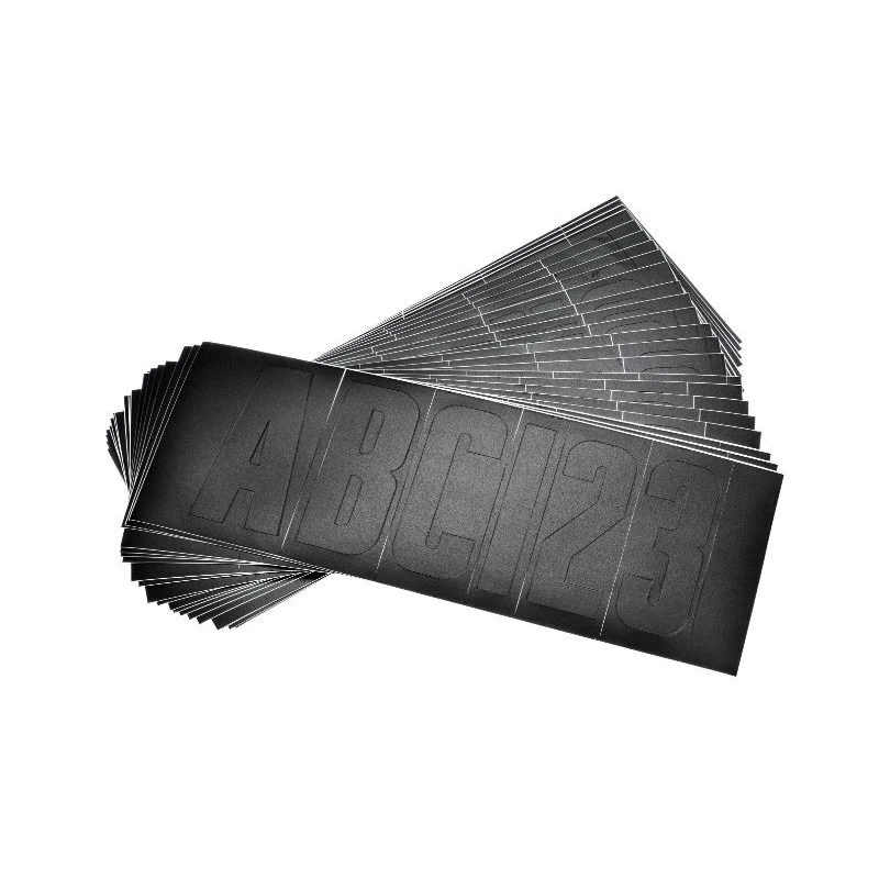 Kit complet pour l’immatriculation du bateau, 148 chiffres et lettres hauteur 70 mm fabriqué en vinyle et de couleurs noirs pour les coques rigides du bateau et boudins pneumatique du semi-rigide, fabrication ATTWOOD qualité nautique.