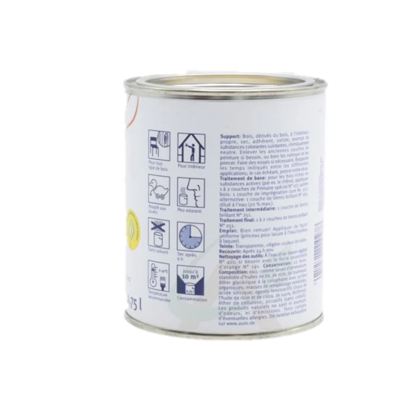 Caractéristiques techniques du vernis transparent brillant AURO n°251 :