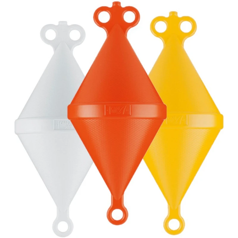 La bouée losange de corps-mort CAN-SB est 100 % en plastique dur polyéthylène, équipée de deux anneaux superieurs pour faciliter la récupération en bateau, cette bouée de mouillage est sans entretien et garantie longue vie contre les rayons UV du soleil.