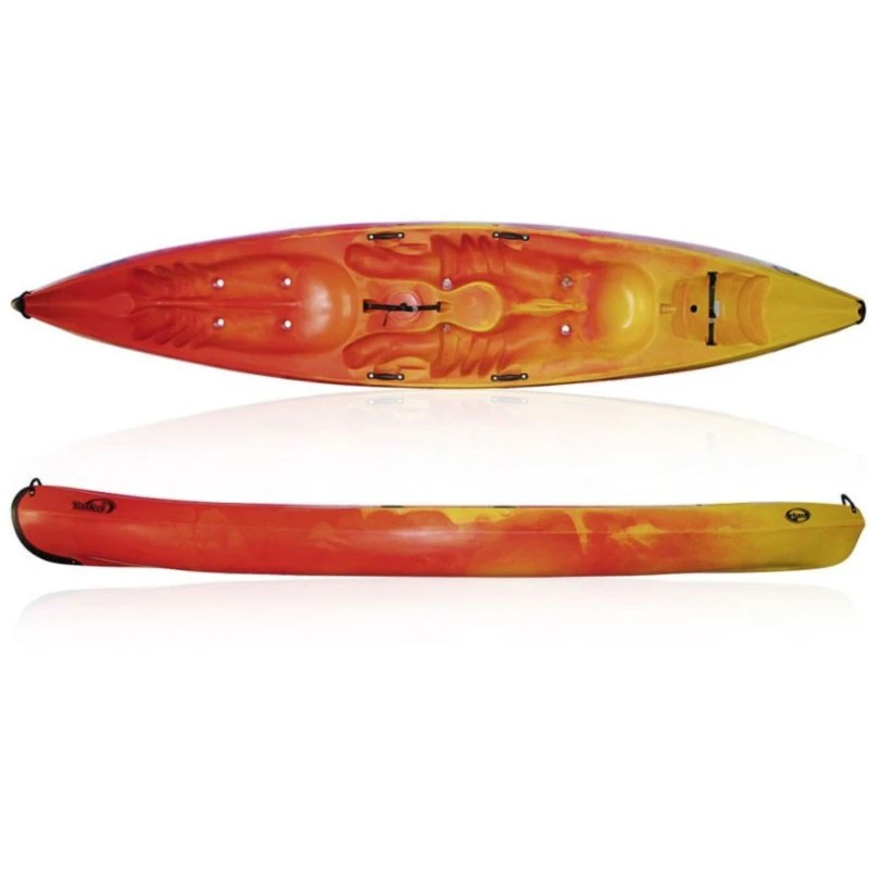 Le kayak 2 à 3 place de location par excellence, ultra robuste, tous gabarits, ne crains pas les zones peux profondes avec bidon se transformant en dossier grâce au support incliné.