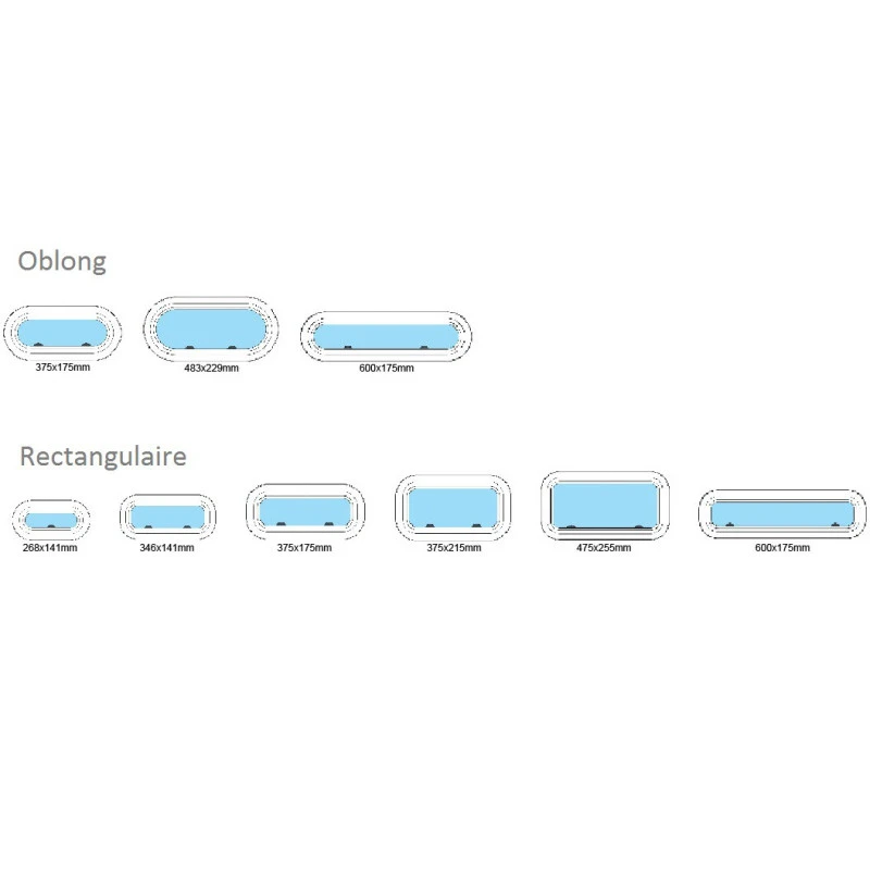 Dimensions disponibles du hublot Standard rectangle ouvrant GEBO :