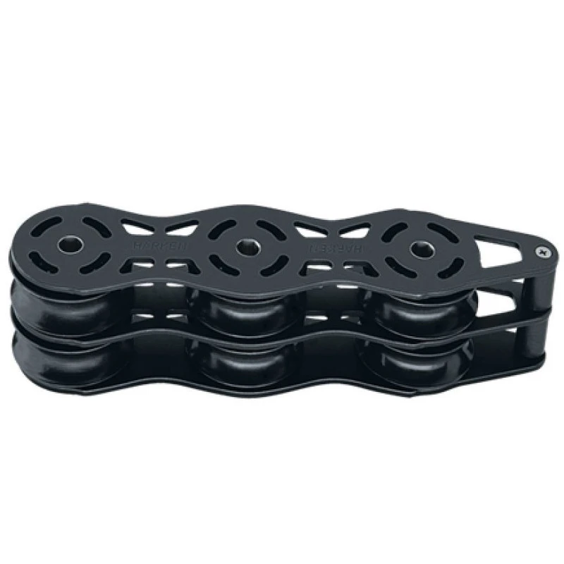 Parfaites pour guider les drisses et les drosses vers le cockpit, les joues en aluminium noir anodisé sont conçus pour durer un maximum dans le temps. Cette version est donc un modèle avec 6 réas de 57 mm à deux étages permettant de renvoyer jusqu’à 6 drosses dans un minium d’encombrement sur le pont.