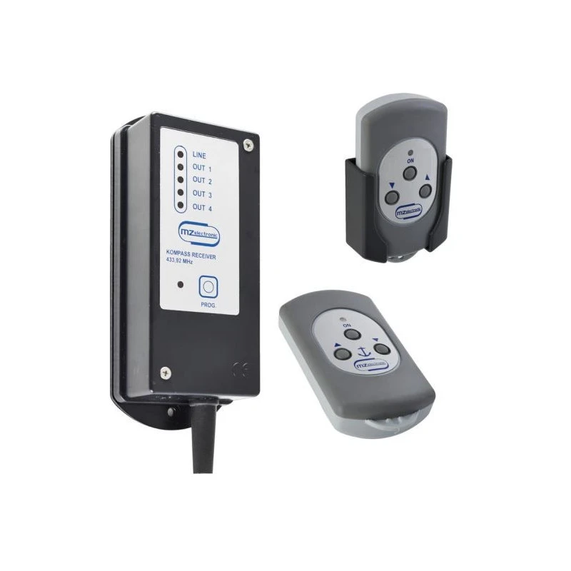 Le kit MZ ELECTRONIC Kompass 2 comprend une télécommande sans fil pour guindeau et son boîtier à connecter au relais, un montage facile sur votre bateau pour un confort d’utilisation maximal avec une commande sans fil pur guindeau.