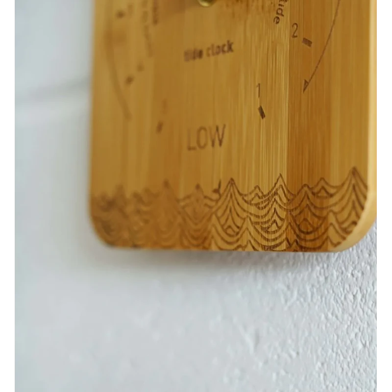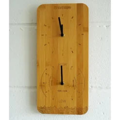 Indispensable pour les passionnés de la mer, les surfeurs, les marins comme les vanlifeurs, l’horloge en bambou naturel est conçue pour fournir un guide des heures de marée ainsi que l’heure analogique. Idéal pour visualiser d’un simple coup d’oeil l’état de la marée montante ou descendante ainsi que le temps restant jusqu’à la marée haute ou basse, l’horloge se réfère à la carte des marées locales.