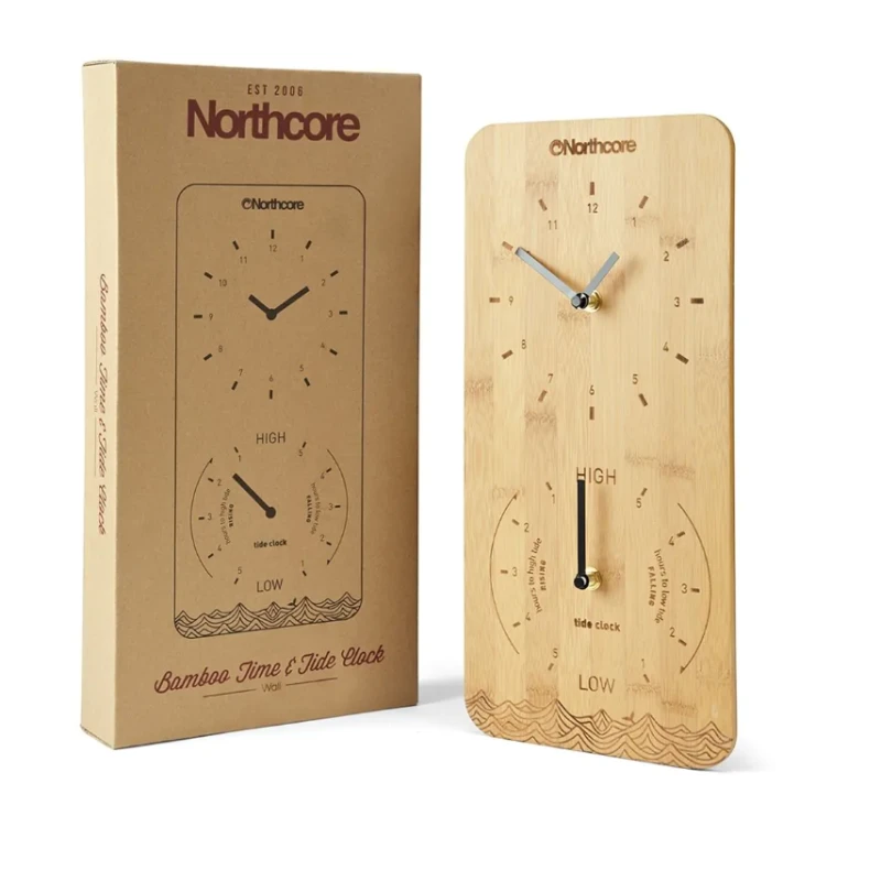 L’horloge à marée de NORTHCORE permet de visualiser l’état de la marée montante ou descendante, le temps restant jusqu’à la marée basse ou haute. L’horloge indique également l’heure de manière fun & silencieuse à bord du bateau, camping-car ou le fourgon aménagé, comme à la maison.