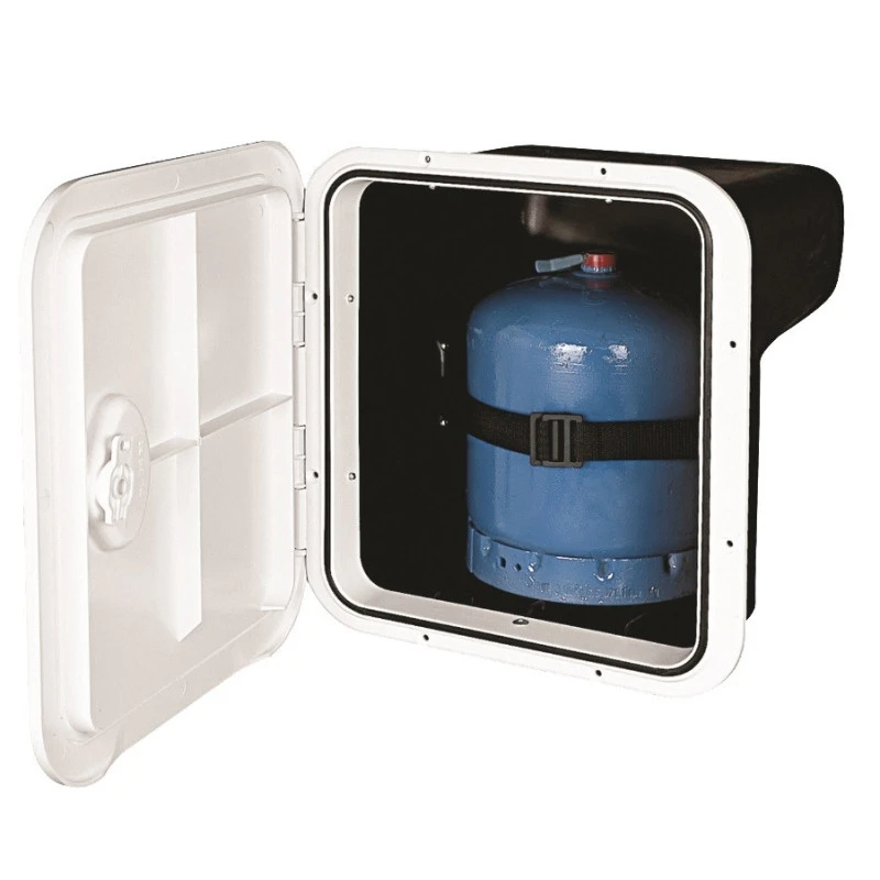 Parfait pour les bouteilles CAMPINGAZ, vous pourrez installez ce coffre a gaz dans le cockpit du bateau ou le fourgon aménagé pour rénover ou créer un circuit gaz.