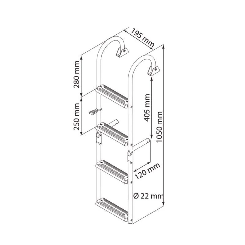 Les marches de 195 mm sont inclinables et anti-dérapantes. L’échelle est équipée de véritables poignées permettant une remontée facile à bord et une descente plus douce. Cet équipement de pont de bateau est un équipement idéal pour voilier ou vedette à moteur, un confort à bord pour la baignade mais un vrai élément de sécurité.
