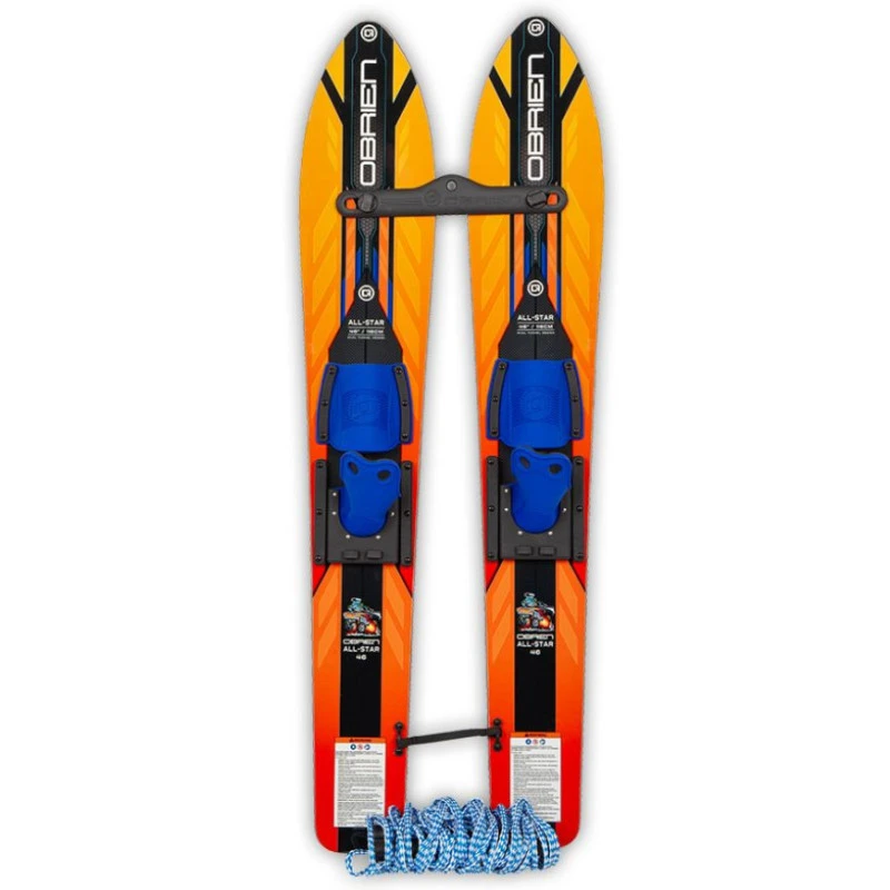 Faites en des champions ! Paire de skis nautiques 117 cm spéciale pour les enfants, les All-Star Trainer de O’BRIEN sont conçus pour les enfants jusqu’à 40 kg. Livrés avec corde et palonnier.