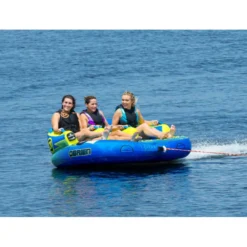 Place au fun à plusieurs ! La Barca 3 de O’BRIEN est une bouée tractée très ludique avec sa forme canapé et ses deux points d’accroches pour être remorquer derrière le bateau dans le deux sens. Pour 3 personnes.