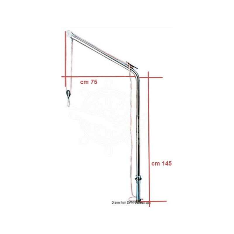 Conçus en inox poli miroir, ils sont fixes et se montent grâce à une platine traversante et une embase en fond de coque fournis, couper le bossoir a votre guise pour l’adapter au bateau.