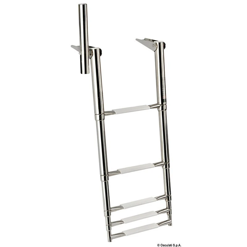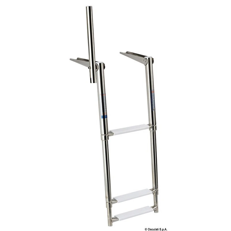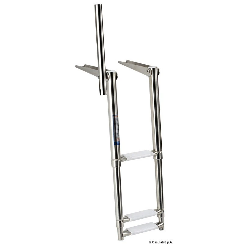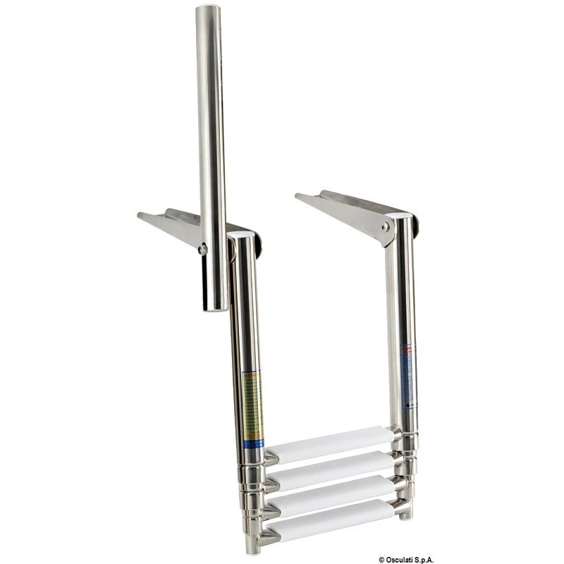 Echelle de bain pour plate-forme arrière de bateau haute qualité de fabrication, modèle d’échelle OSCULATI télescopique avec poignée pour faciliter la sortie de l’eau. En inox.
