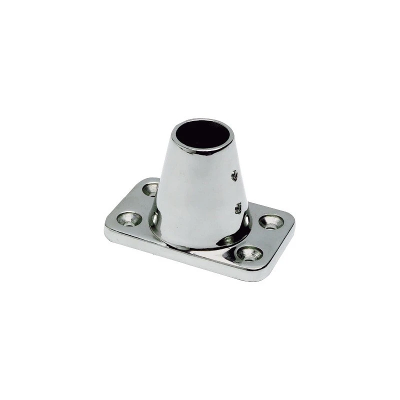 Embase, support de fixation pour chandelier inox du bateau diamètre 25 mm disponible en version droite ou inclinée.