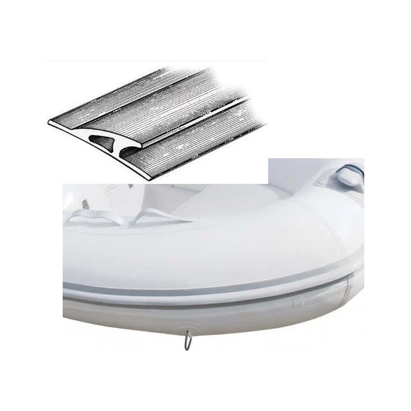 Profil latéral pour semi rigide et bateau pneumatique, avec retour anti embrun ou fixation housse, très robuste ce profilé fait office de pare-battage, vendu par 24 mètres, souplesse et qualité de finition exceptionnel.
