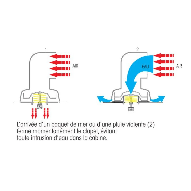 Si votre bateau est déjà équipé de manches à air PLASTIMO, vous pouvez très facilement améliorer leur capacité d’aération en ajoutant une boîte dorade Cool’n Dry. La bonne aération de votre bateau est indispensable à votre confort et également à la longévité de vos équipements d’intérieur dans le bateau. La boîte de dorade de pont se ferme automatiquement dès qu’il y a de forte pluie.