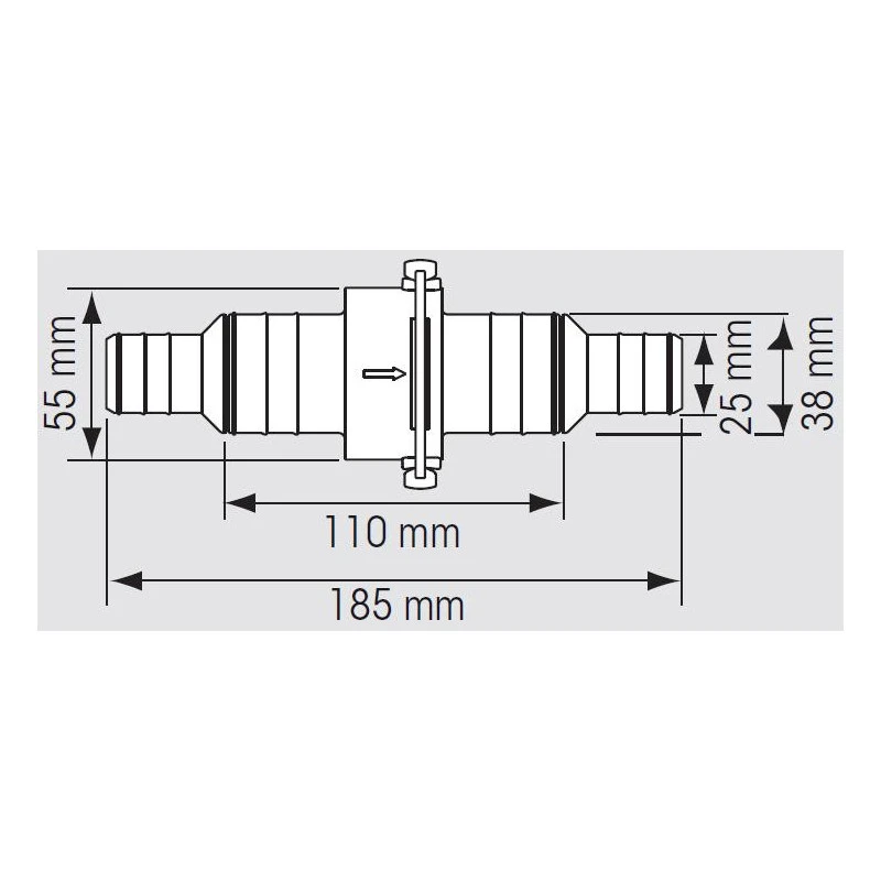Selon votre installation, le clapet anti-retour PLASTIMO peut être utiliser pour du tuyau de ø 25 mm ou ø 38 mm. Il suffit de découper l’embout de 25 mm pour l’utiliser en 38 mm (une gorge est prévue pour facilité le découpage).