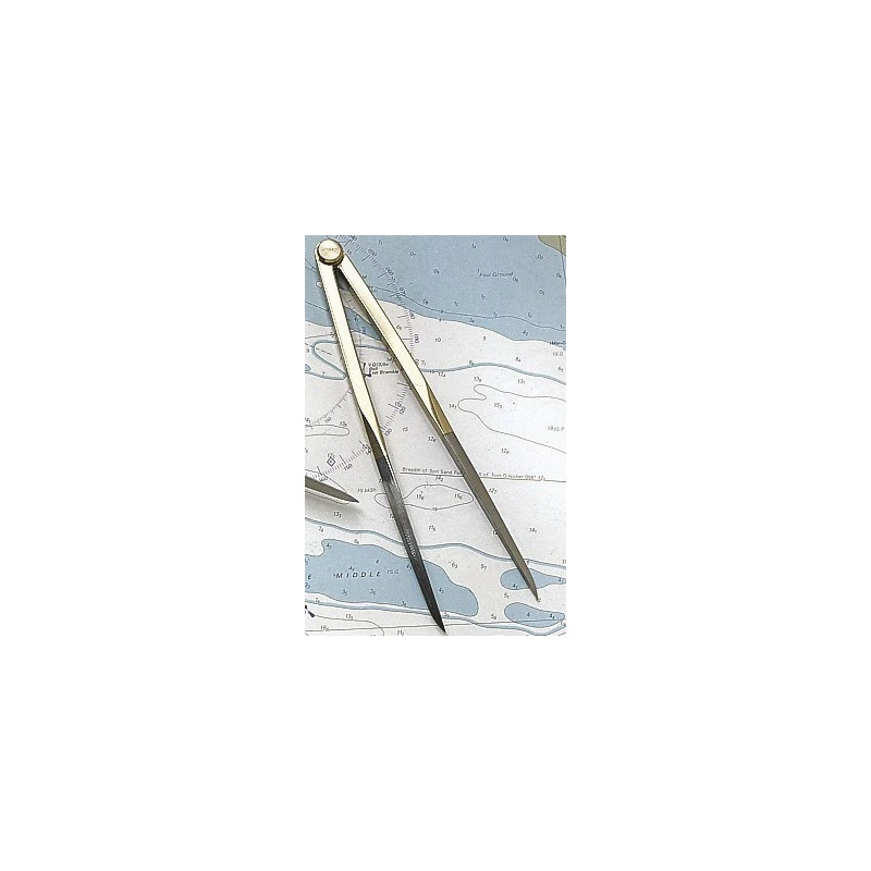 Compas à pointe sèche droit pour la navigation sur carte marine papier en bateau, élégant avec son corps en laiton pointe inox poli.