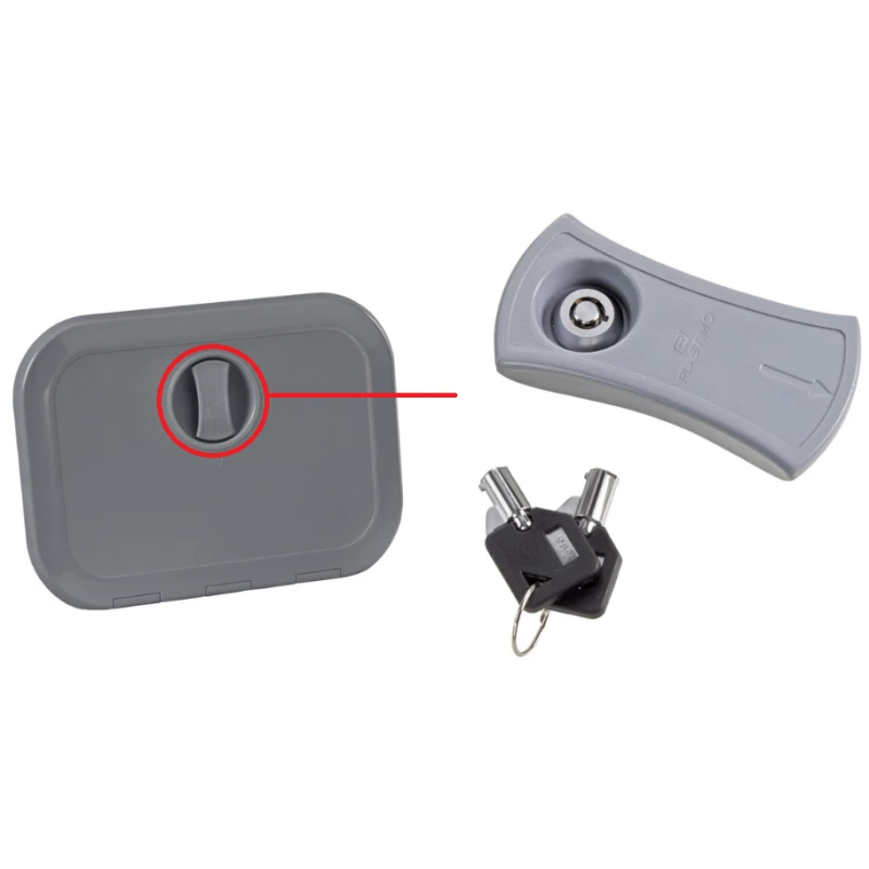 PLASTIMO Kit serrure trappe grise permet d’équiper vos trappes et coffres de rangement de serrure pour toujours plus de sécurité du bateau!