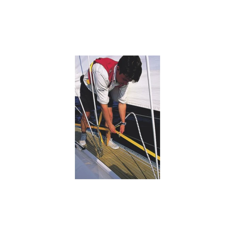 Prête à poser, la sangle polyester blanche de PLASTIMO de haute résistance est un équipement indispensable pour la sécurité des déplacements à bord du bateau : voilier ou bateau à moteur. La sangle plate présente l’avantage de ne pas rouler sous le passage des pieds. L’élément de sécurité garantit une excellente résistance aux UV, un faible durcissement en milieu salin & une très haute résistance à l’usure.