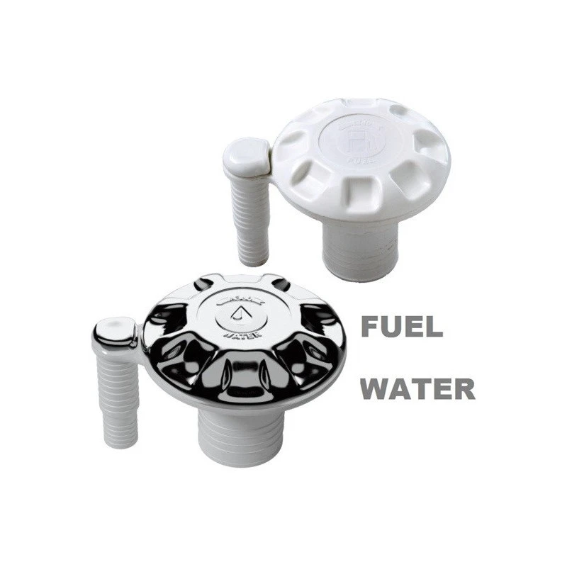 Bouchon de remplissage pour l’eau ou le carburant type nable avec évent pour le bateau et le camping-car, disponible avec bouchon nylon chromé.