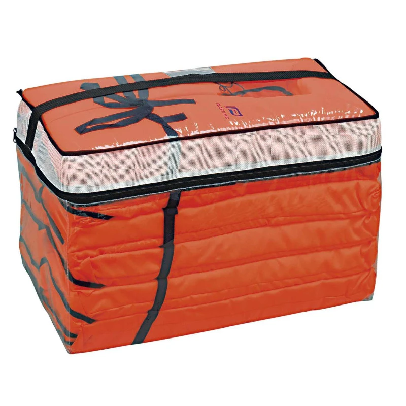 Pack de comprenant 4 brassières (taille L-XL) PLASTIMO Storm 100N en sac PVC à fermeture par zip et mesh pour l’aération.