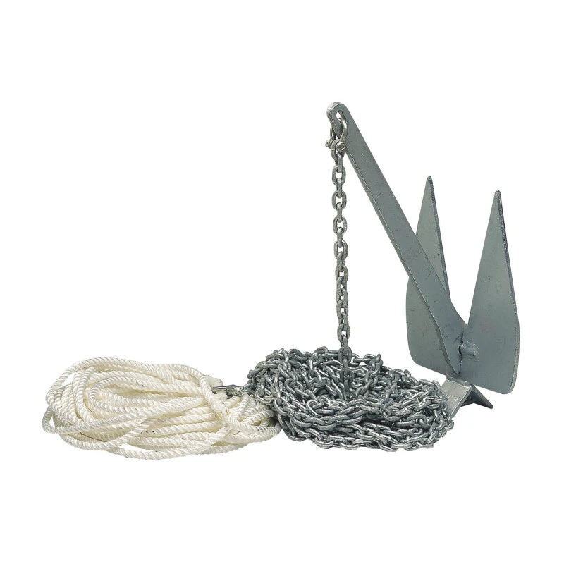 Kit de mouillage complet comprenant une ancre PLASTIMO Britany, de la chaîne le cordage 3 torons. Disponible en plusieurs version selon le poids et la longueur de votre bateau. Très pratique, ce package est fourni avec le bout épissé (déjà relié à la chaîne) et une manille pour relier l’ancre à la chaîne.