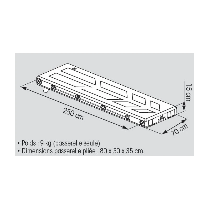 Caractéristiques techniques de la passerelle gonflable de PLASTIMO :
