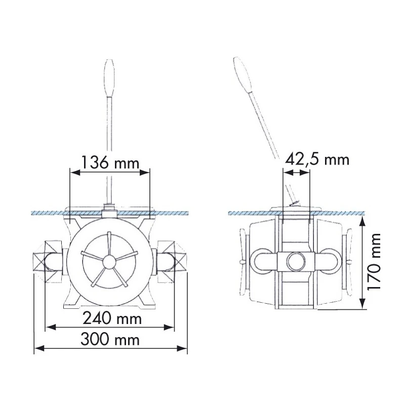 Caractéristiques techniques de la pompe de cale double effet Plastimo accessoire bateau :