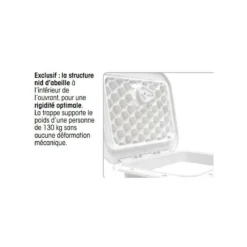 Enfin, la partie amovible de la trappe est dotĂ©e d’une structure en nid d’abeille pour offrir une rigiditĂ© et une soliditĂ© maximale : elle supporte le poids d’une personne de 130 kg sans aucune dĂ©formation mĂ©canique ! DĂ©veloppĂ© pour les bateaux, cet accessoire convient Ă©galement pour les fourgons amĂ©nagĂ©s et camping-cars.