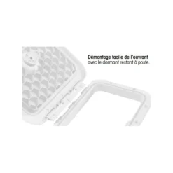 – LivrĂ©e avec un jeu de 2 charniĂšres pour montage au choix : charniĂšre articulĂ©e classique pour ouverture Ă 180° ou charniĂšre permettant un capot totalement amovible