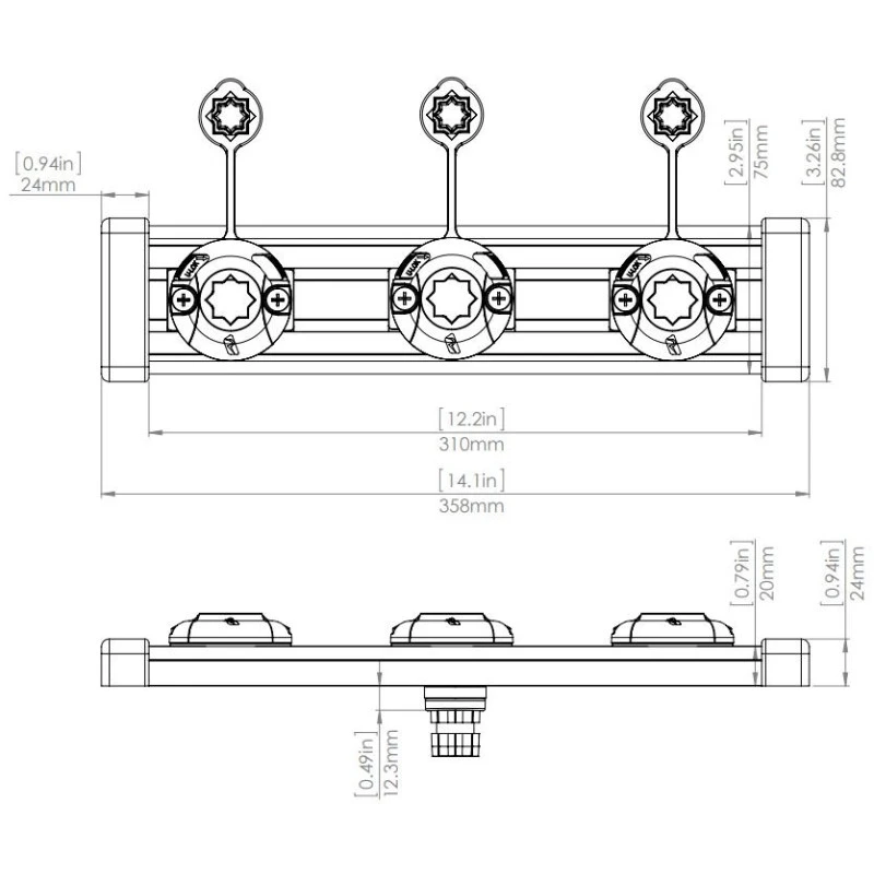 Caractéristiques techniques du RAILBLAZA Trackport Dash 350 planche 3 supports pour bateau :