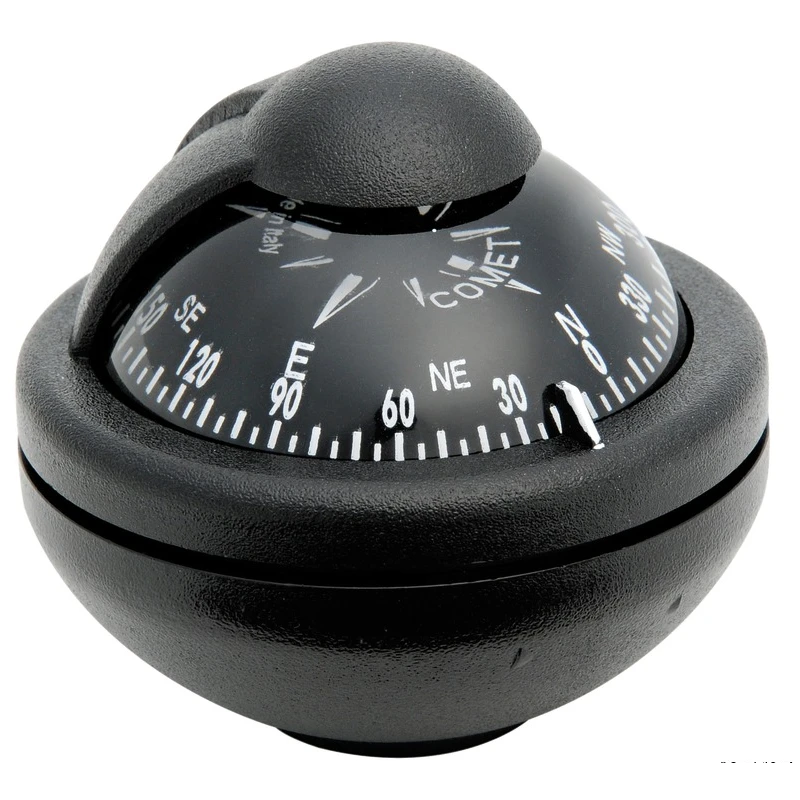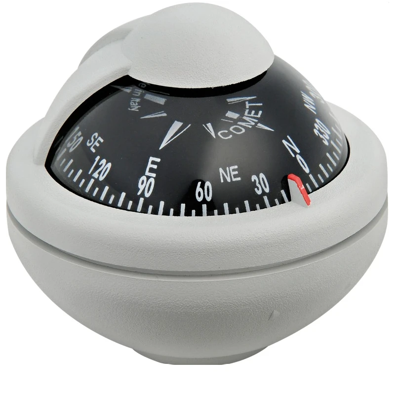 Le compas de route Comet de RIVIERA sur étrier trouvera une place facilement sur la console ou sur une paroi même verticale du bateau.