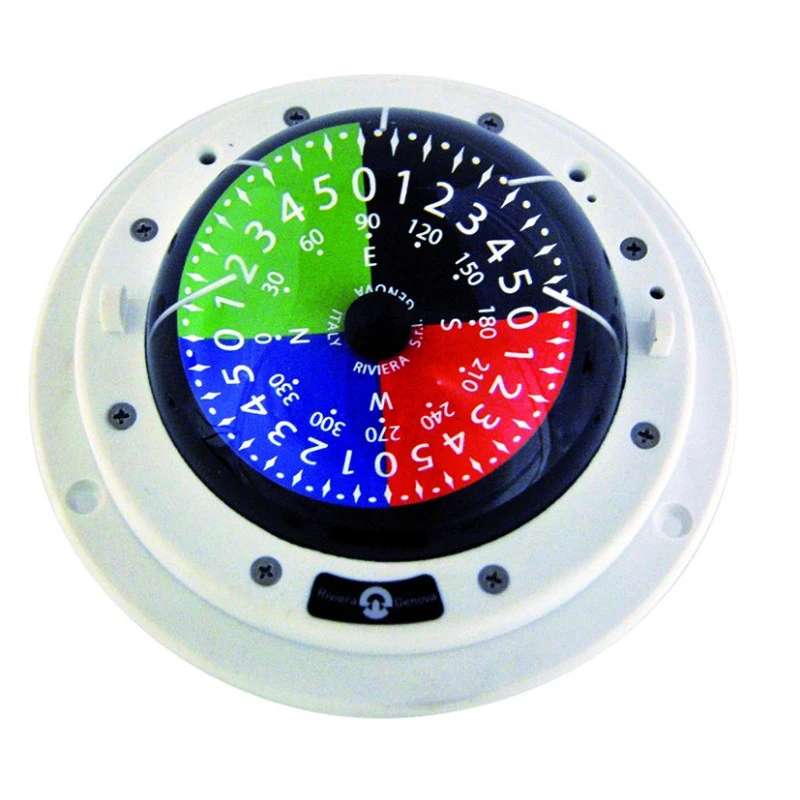 Compas tactique de régate avec rose 4 couleurs pour une installation sur les voiliers de régate ou dériveurs. Ce modèle RIVIERA s’installe sur plat pont par encastrement.