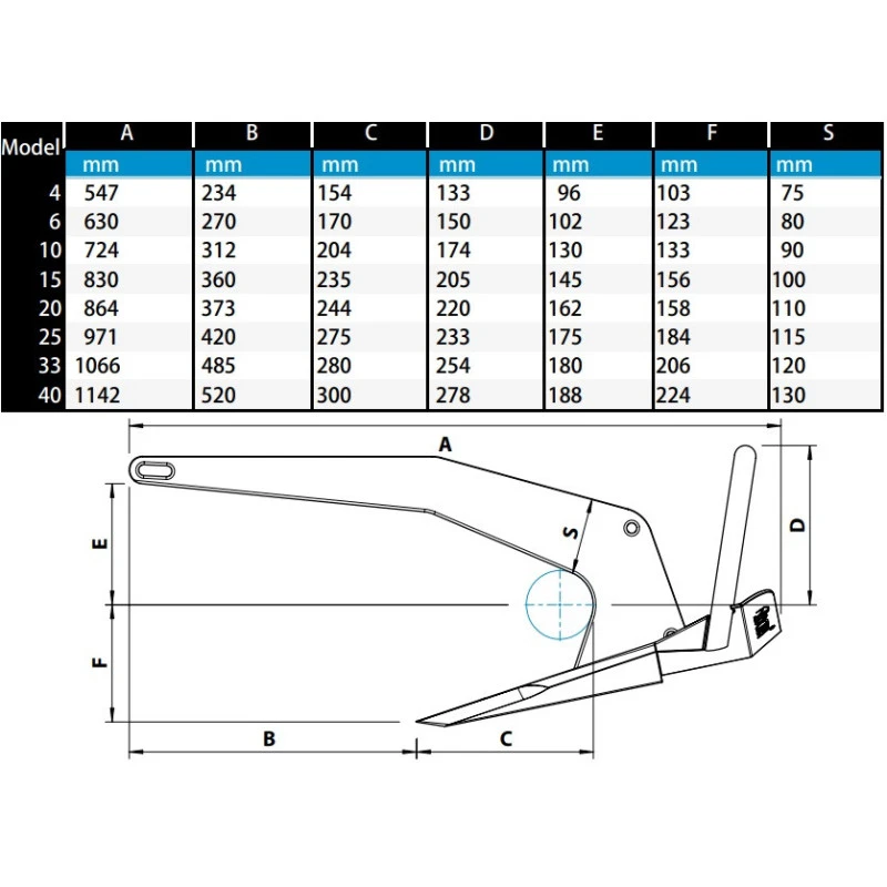 Caractéristiques techniques des ancre marine ROCNA Original pour bateau :