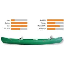 Sympathique, ce canoë en polyethyene haute densité peut accueillir jusqu’à 4 personnes : deux parents et deux enfants : le siège central est conçu pour 2 personnes.