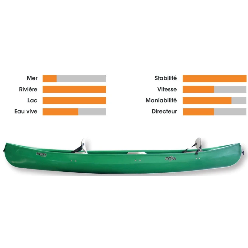 Canoë jusqu’à 4 places, idéal pour la randonnée en mer ou en rivière, le ROTOMOD Riviera en version confort est le canoë familial par excellence : avec ses 4,64 m, il peut embarquer jusqu’à 295 kg de charge et dispose de deux dossier rigide !