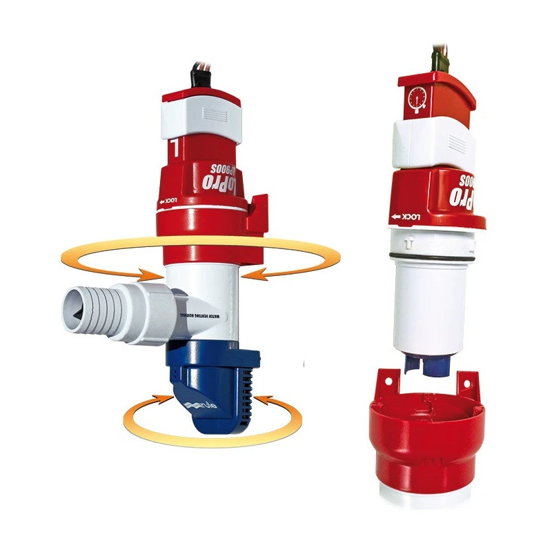 Innovante cette pompe de cale est remplie d’astuces, sont corp est orientable à 360° pour une fixation facile du tuyau, le tuyau est lui