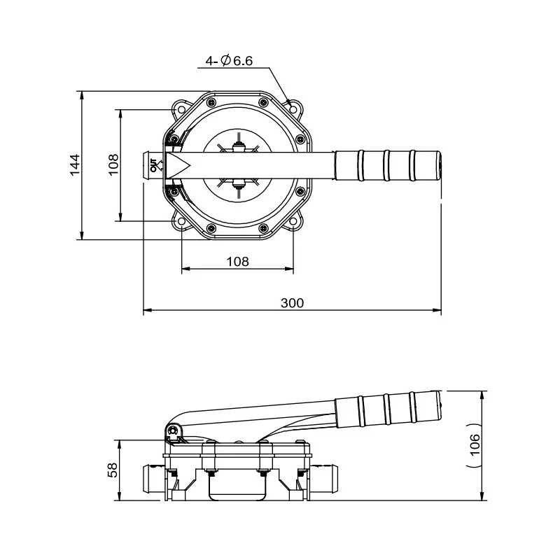Levier fixe et a fixation sur cloison, débit de pompe de 0,33L par aller retour (environ 20L / min). Embouts classique de 25 mm (diamètre de tuyau généralement utilisé par les constructeurs de bateau, pour l’évacuation des eaux de fond de cale), cette pompe s’impose comme un accessoire pour bateau de qualité facile à mettre en place et surtout prévue pour les petites unités.