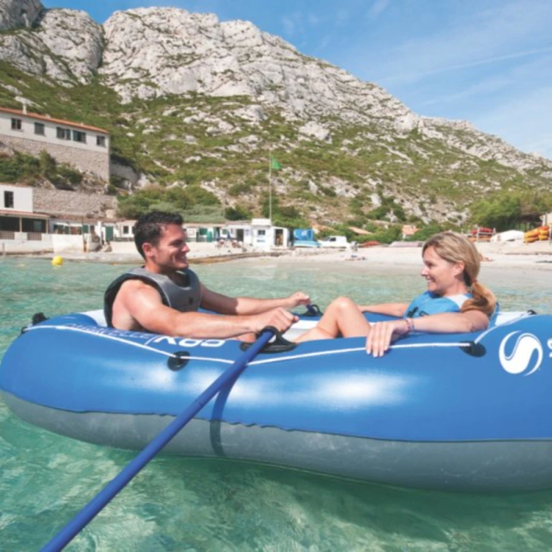 Au programme avec la Caravelle K65 : rigolades et baignades. Kit SEVYLOR contenant le bateau pneumatique, le gonfleur et les rames !