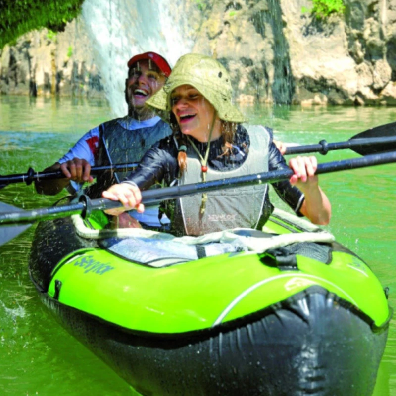 Ce kayak gonflable SEVYLOR est prévu pour accueillir deux adultes. Équipé de nombreux rangements et pochettes ainsi que d’un grand sac à dos amovible, il est parfait pour les randonnées en mer ou en rivière.