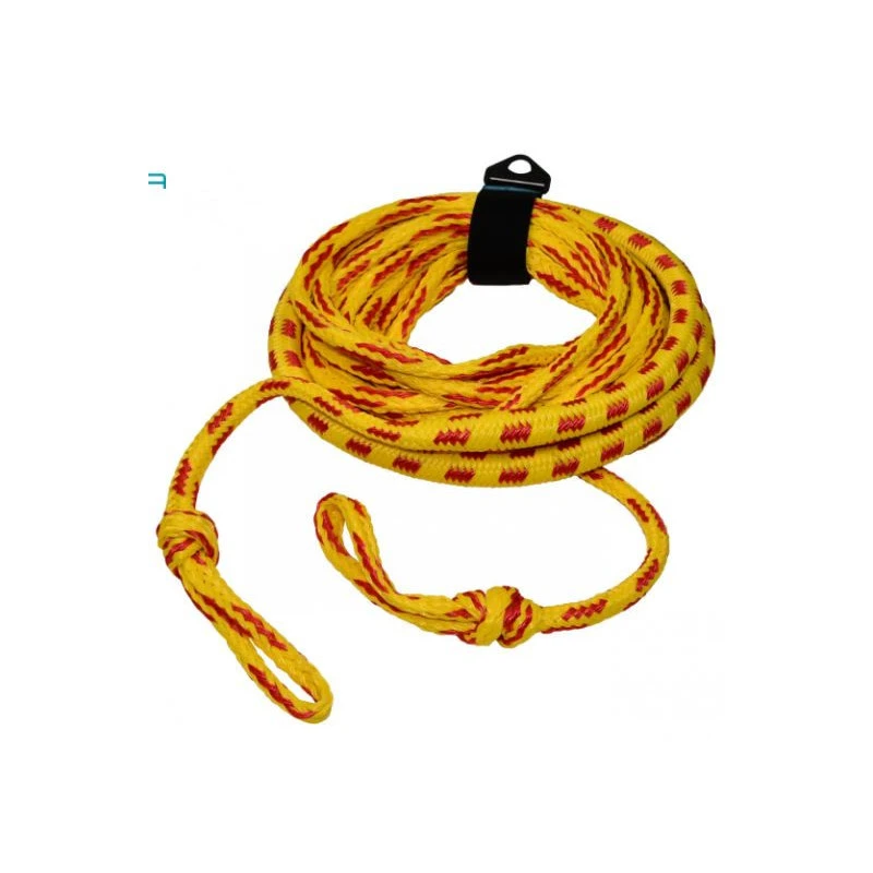 Ce bout est donc une corde de traction pour le remorquage des bouées tractées capacité 4 personnes maximum. De couleur jaune, rouge vif et flottant, il est permet donc de répondre à la réglementation DIV-240, lorsque vous remorquez un engin tracté. Pour faciliter la mise en place, une boucle épissée est présente à chaque extrémité.