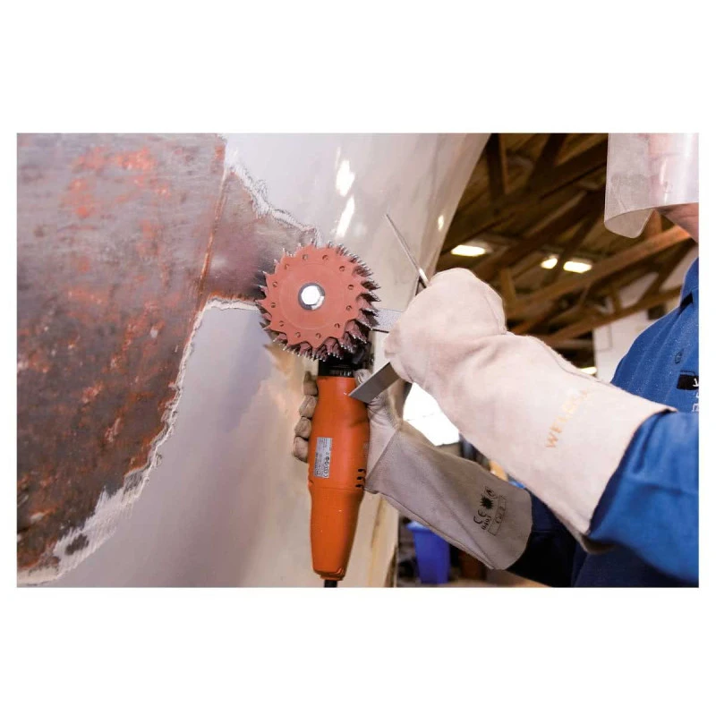 Pratique pour rénover une coque de bateau en acier ou en aluminium, mais également pour remettre a nue la quille du voilier. Le disque rotatif TERCOO viendra s’installer sur une perceuse électrique, la mise en oeuvre est donc très facile & accessible a tout bricoleurs un minimum équipé.