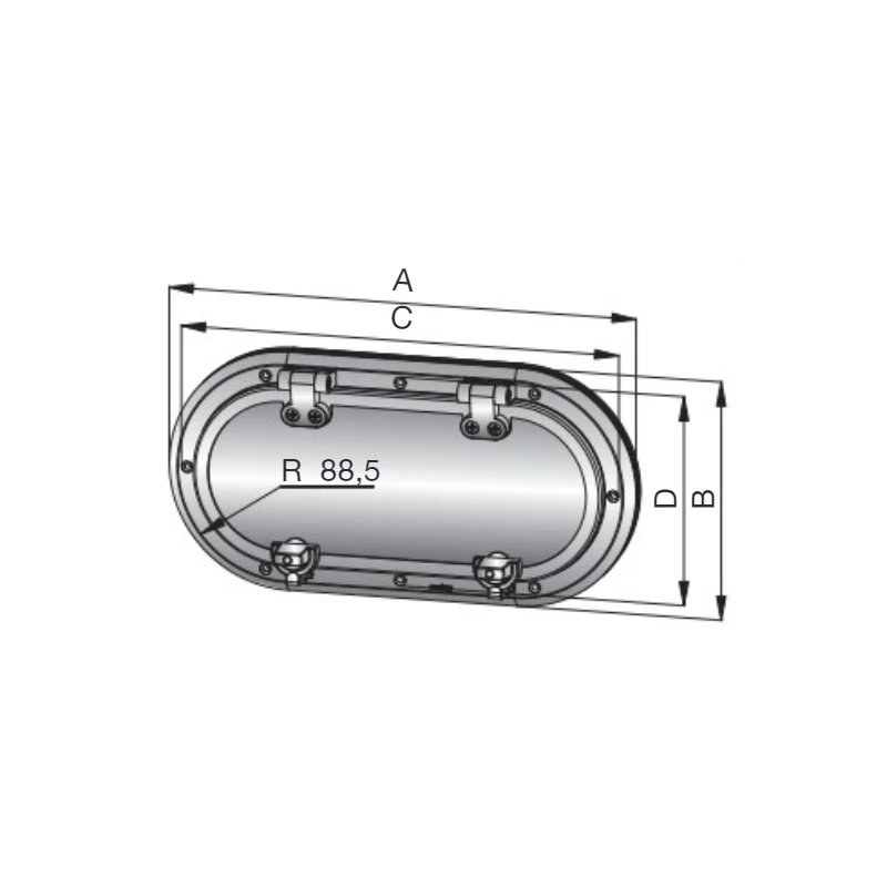 Caractéristiques techniques du hublot elliptique PX de VETUS :