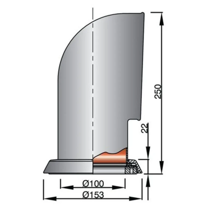 Caractéristiques techniques du manche à air en inox ø 100 mm VETUS :
