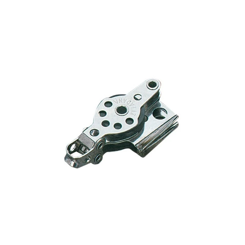 Accastillage de qualité pour voilier, la poulie inox avec coinceur est idéale pour palan de diamètre 6 mm en dériveur ou en voilier de petite taille.