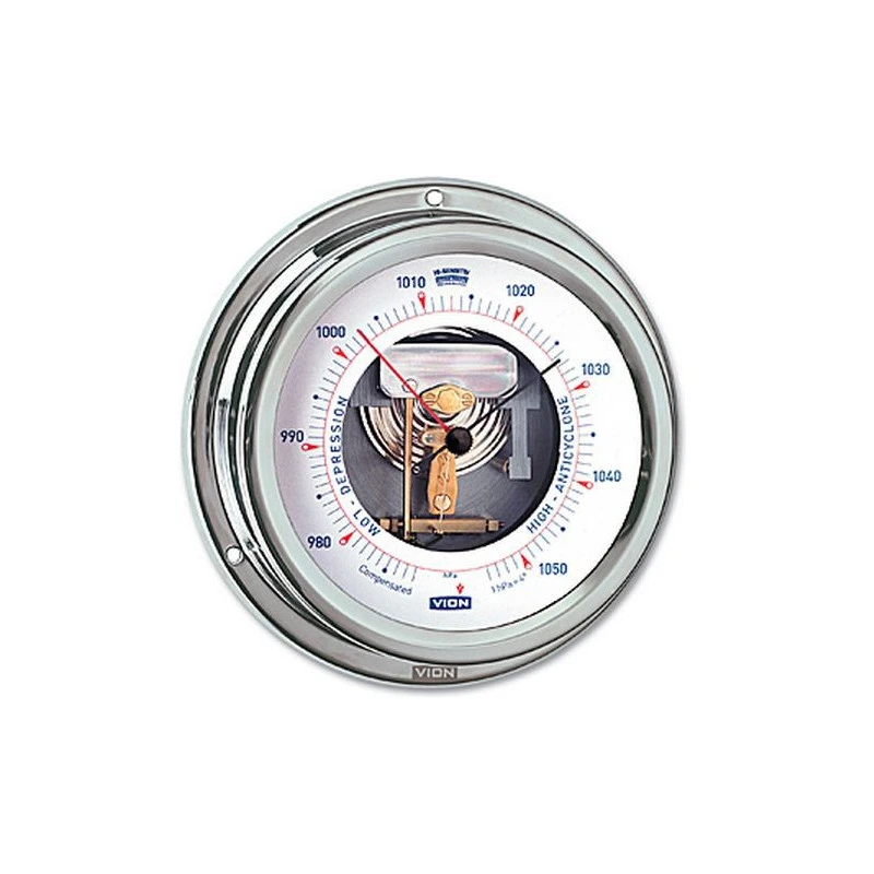 Grand baromètre VION A130, fabrication française en inox, ce grand BARO classique à aiguille est idéal comme instrument de navigation en bateau ou pour la prévision météo a la maison, équipé du nouveau mécanisme haute sensibilité HI-SENSITIV.